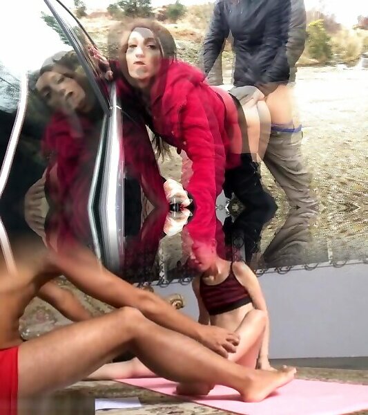 British Female twins and mate get humped on stage