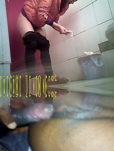 Asian girl with furry vagina stagged in toilet peeing
