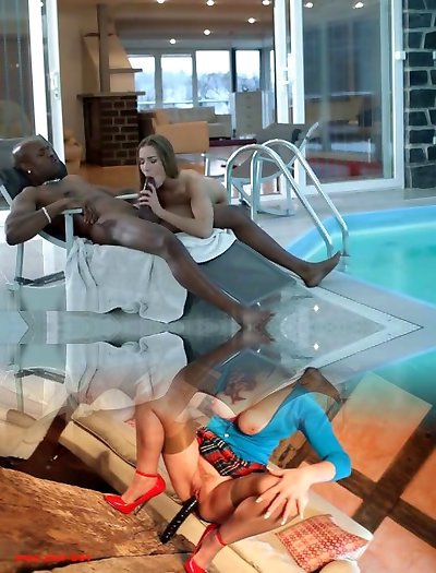 Chestnut haired cutie gets enticed by dark-hued dude and penetrated by him hard
