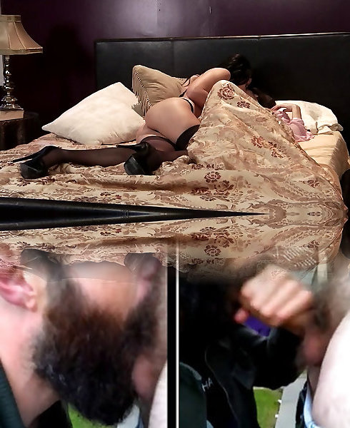 Super-steamy cutie Kristen Scott wears magnificent black lingerie and gives adorable fellatio