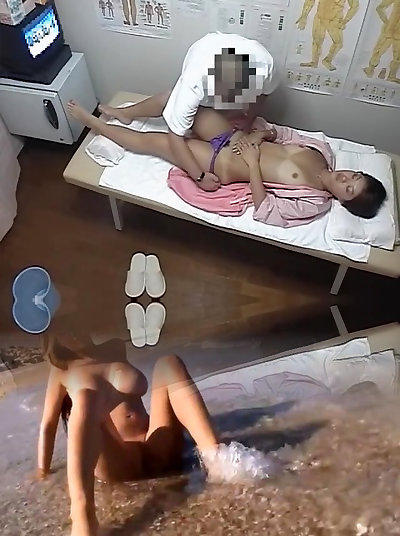 Hidden cameras in a massage cabinet taping insatiable masseuse