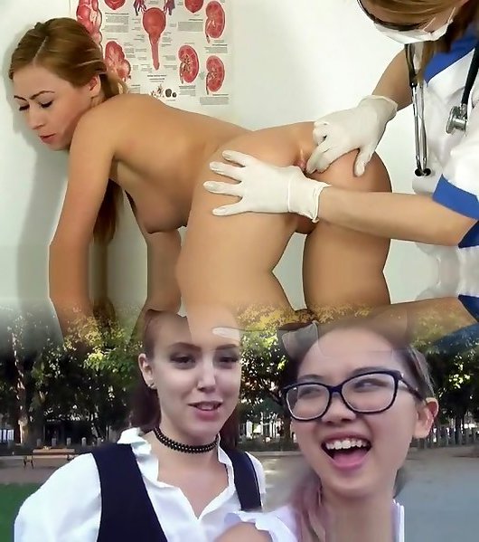 dampfende gefälschte penis-shag für einen japanischen teenager während kinky ärztliche untersuchung